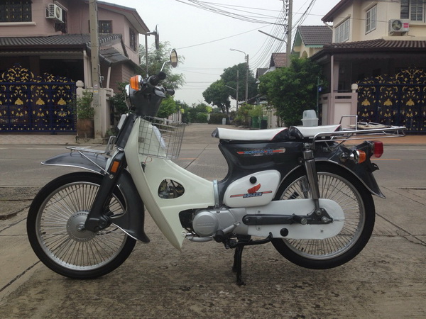 โครงเดิมๆแท้ๆรุ่นสวิงอาร์มยกสูง+ถังแยกใหญ่+วางเครื่องดรีม 4 เกียร์+แต่งแบบเดิมๆสวยๆ+เบาะเดียวดำขาว+ล้อ ซี่ถี่+ปัดเงาล้อฝาครอบเครื่อง+ตะกร้าอก