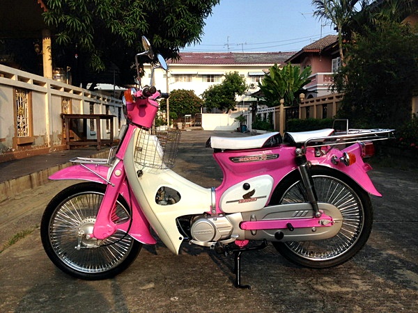 C70 เครื่องดรีม สีชมพูม่วงตัดขาวมุข ระบบ 4 เกียร์+มีท.บ.โอนได้ ราคา 22,000 บาท