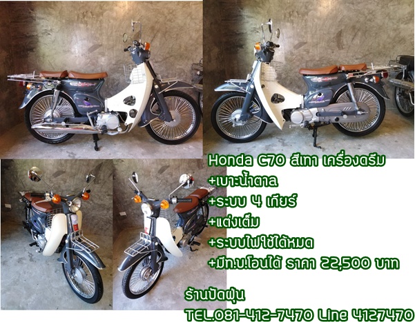 Honda C70 สีเทา เครื่องดรีม+เบาะน้ำตาล+มีท.บ.โอนได้ ราคา..22500