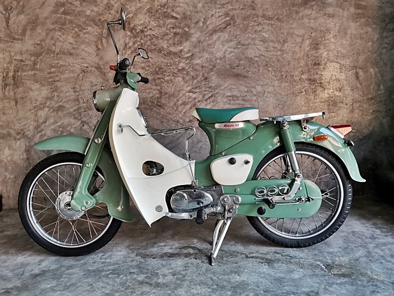 HondaC100..สีเขียวโบราณเดิมๆโครงเดิม เครื่องเดิมก้านกระทุ้งชิวๆ