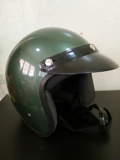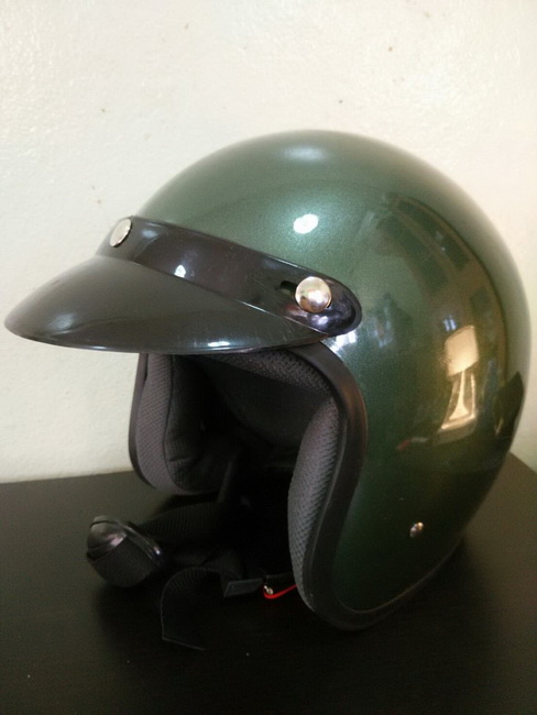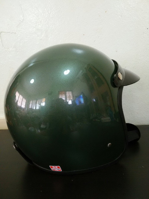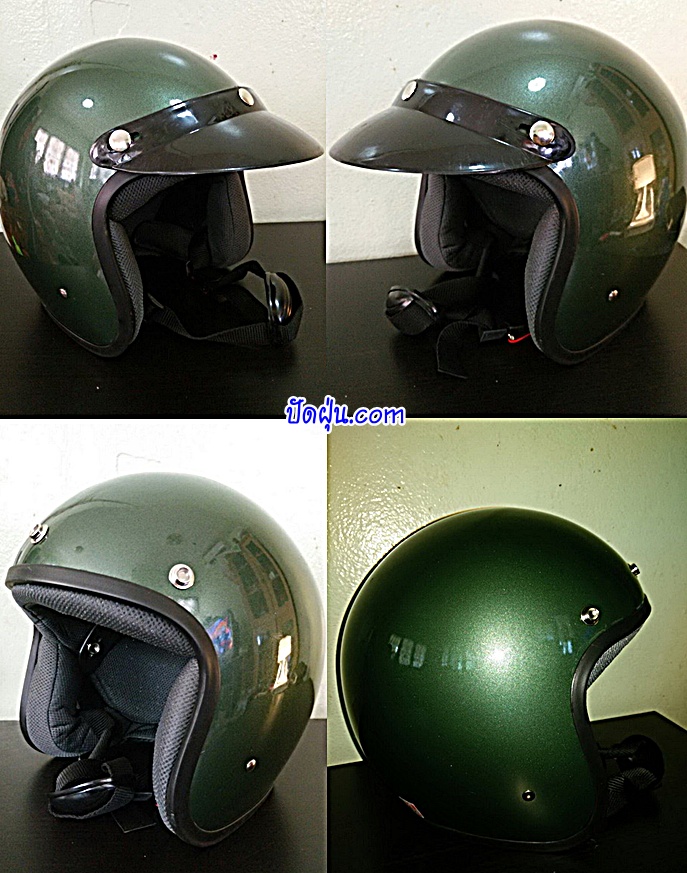 หมวกกันน๊อคคลาสิคแนววินเทจแบบเงาสีเขียว มาตราฐานมอก.