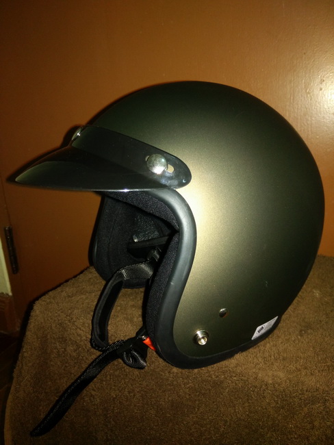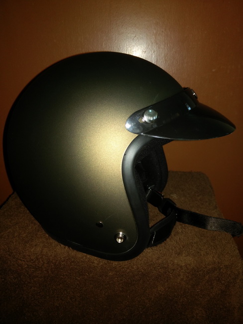 หมวกกันน๊อคคลาสิคแบบด้านสีเขียวด้านเหลือบทอง ราคา 580 บาท